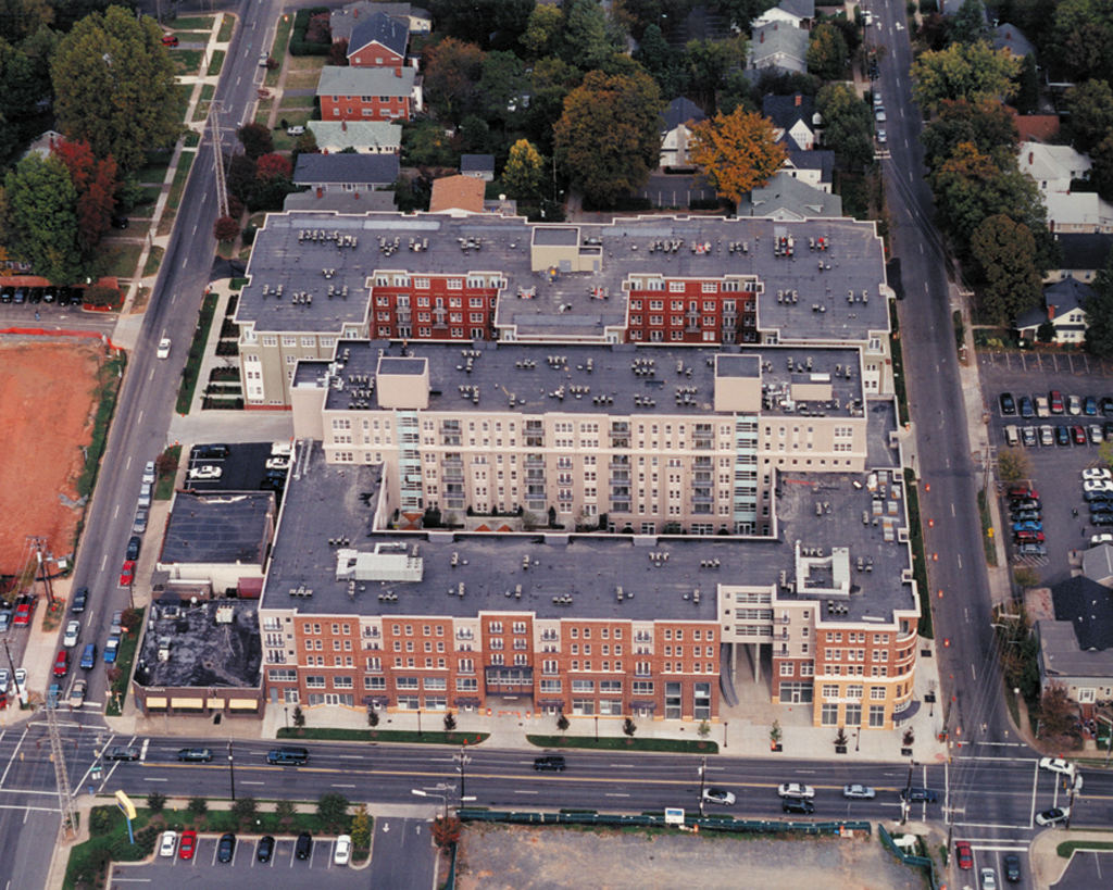 Construction of two buildings that incorporate street-level shops, office space, restaurants, apartments, and condominiums