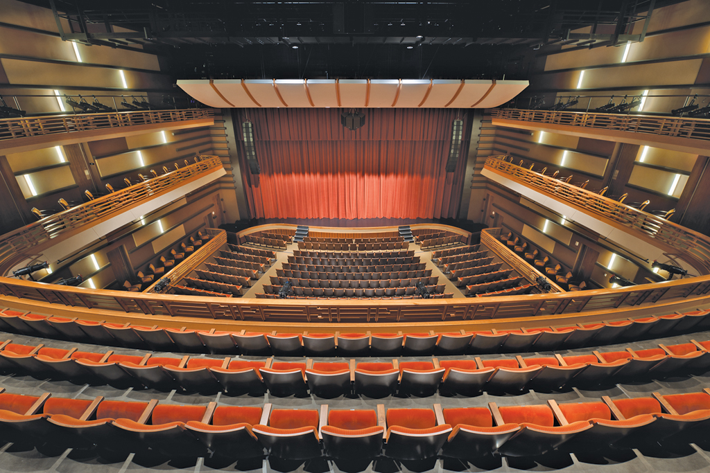 The Wells Fargo Auditorium is on one of two lower levels of the Knight Theater, along with a pre-function space and access to two underground tunnels that lead to below-grade parking structures