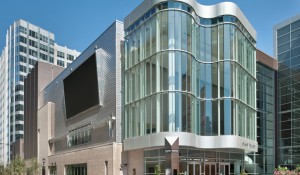 The three-level Knight Theater: Six-story fly gallery area, constructed using cast-in-place concrete walls, columns and shear-walls with a steel roof truss and joist system. Exterior façade of brick veneer, glass curtain-wall at the main entrance, and corrugated and composite metal panel systems