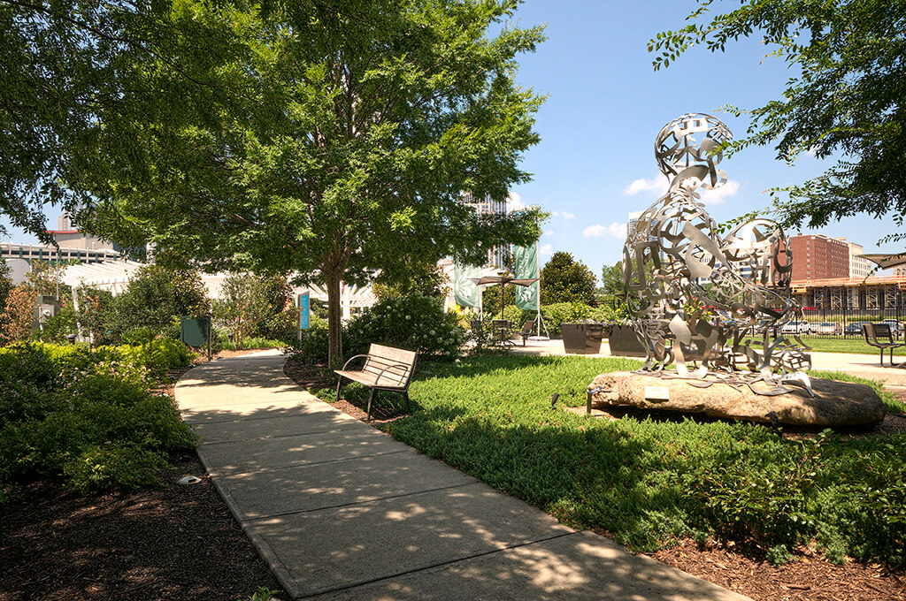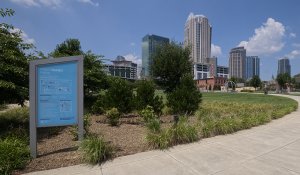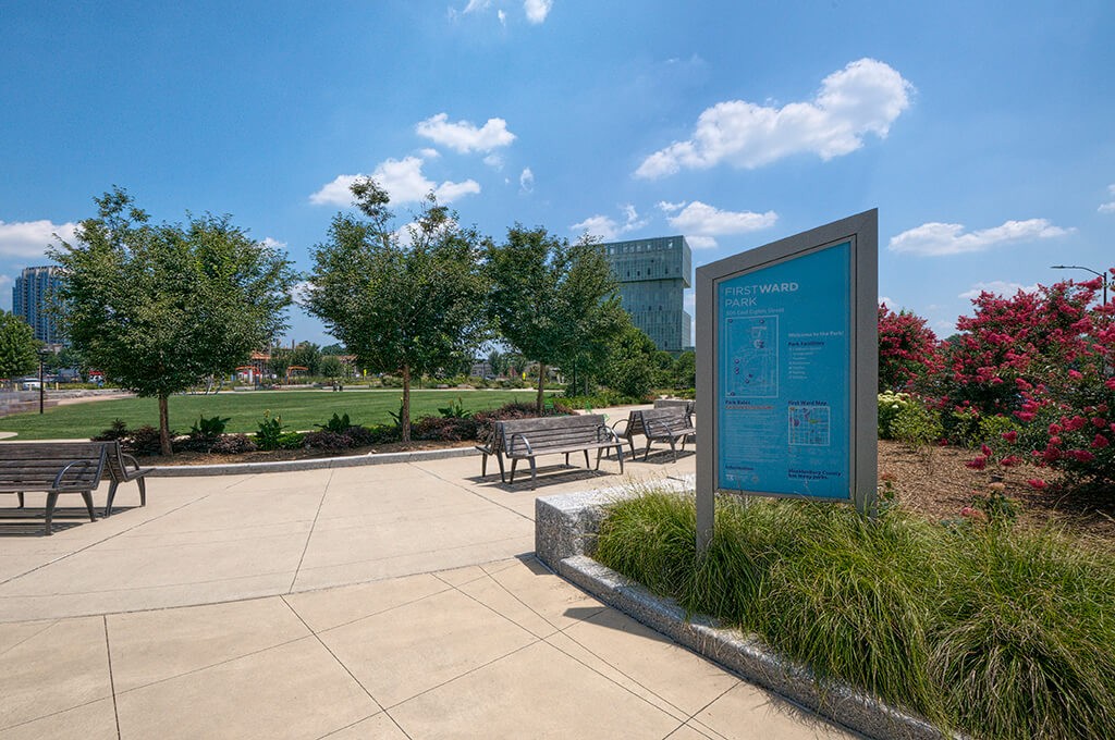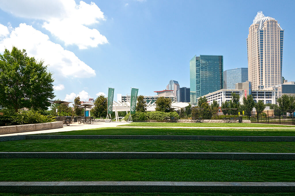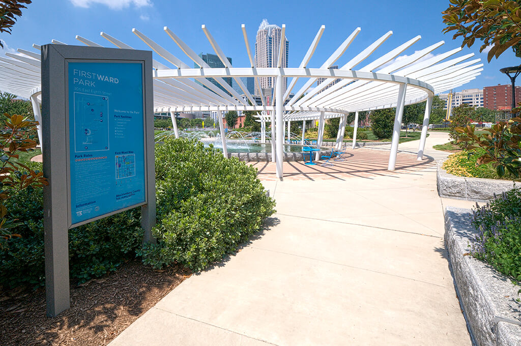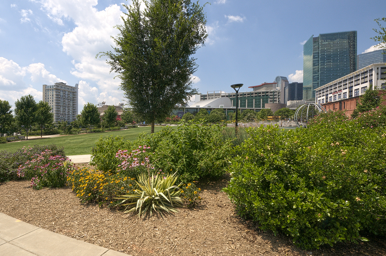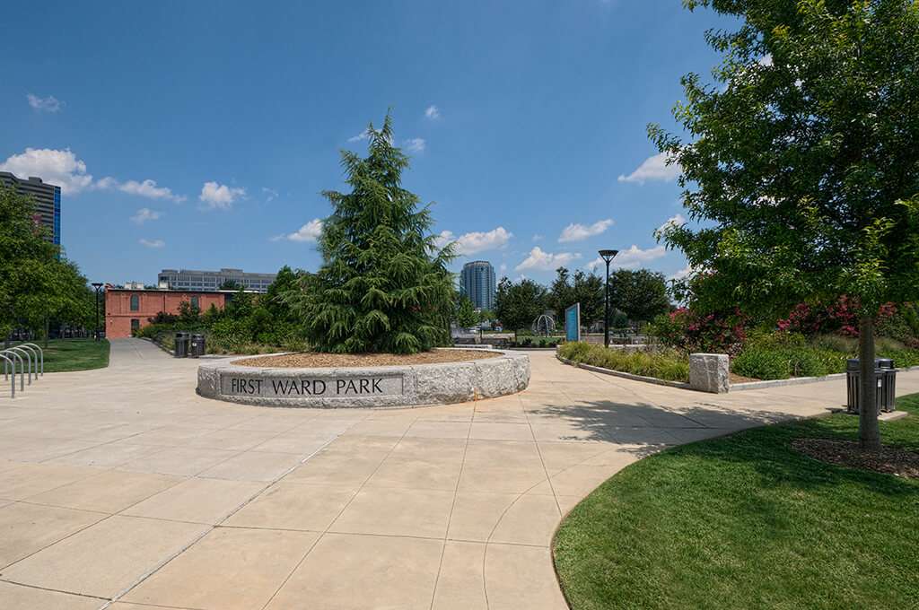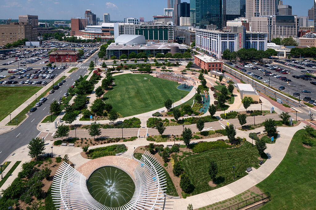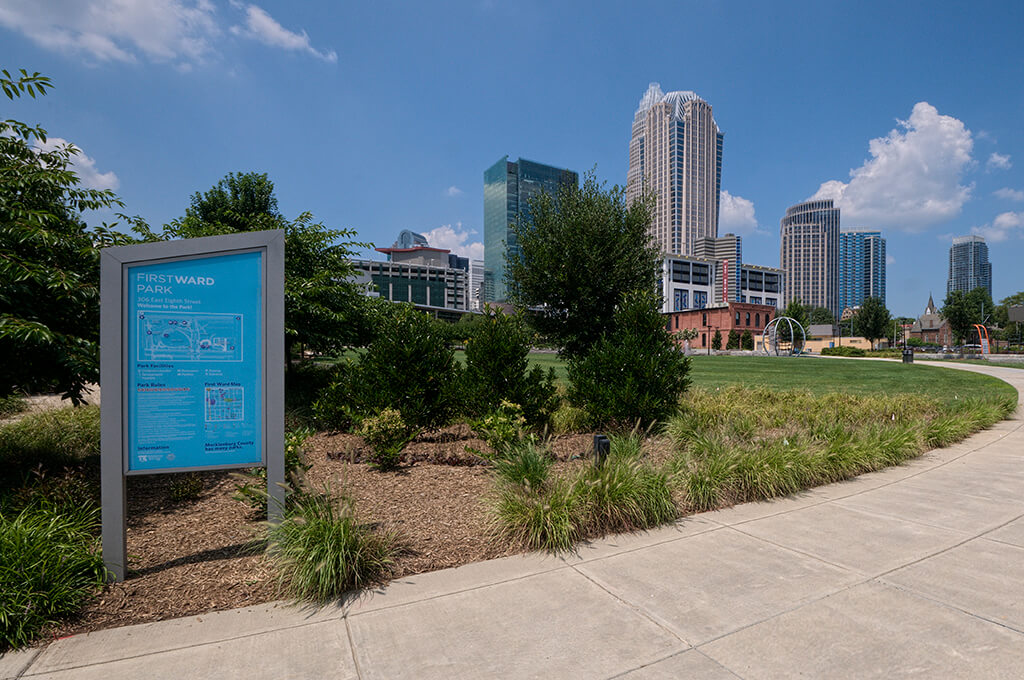 Located on a 4.3-acre site in uptown Charlotte that used to be surface parking lots, First Ward Park is part of the City-County 2020 vision plan that has proposed for each uptown ward in Charlotte to have a park by the year 2020