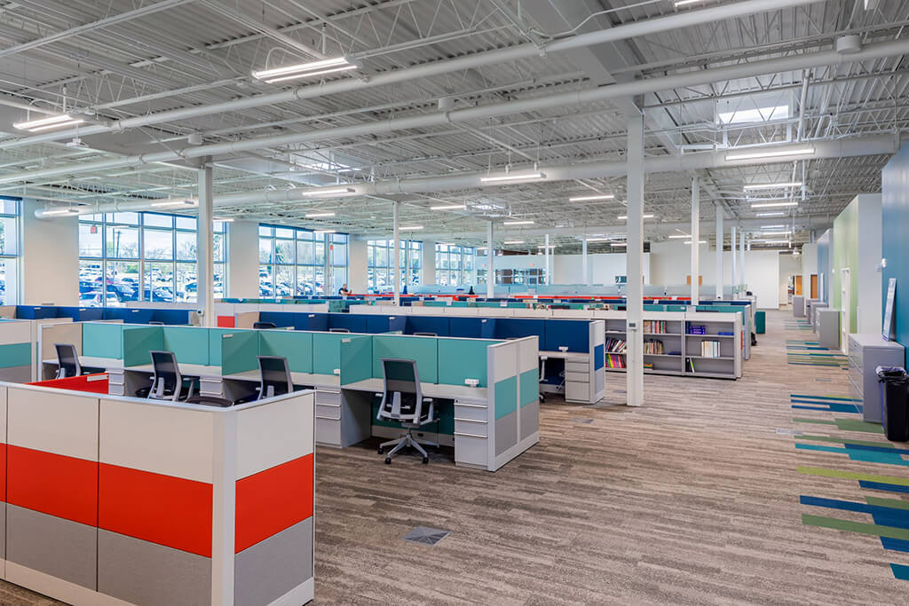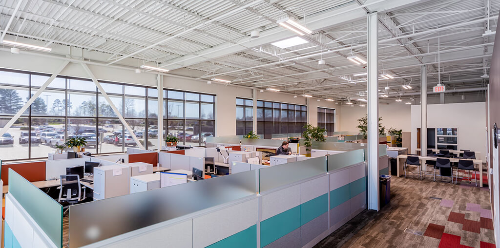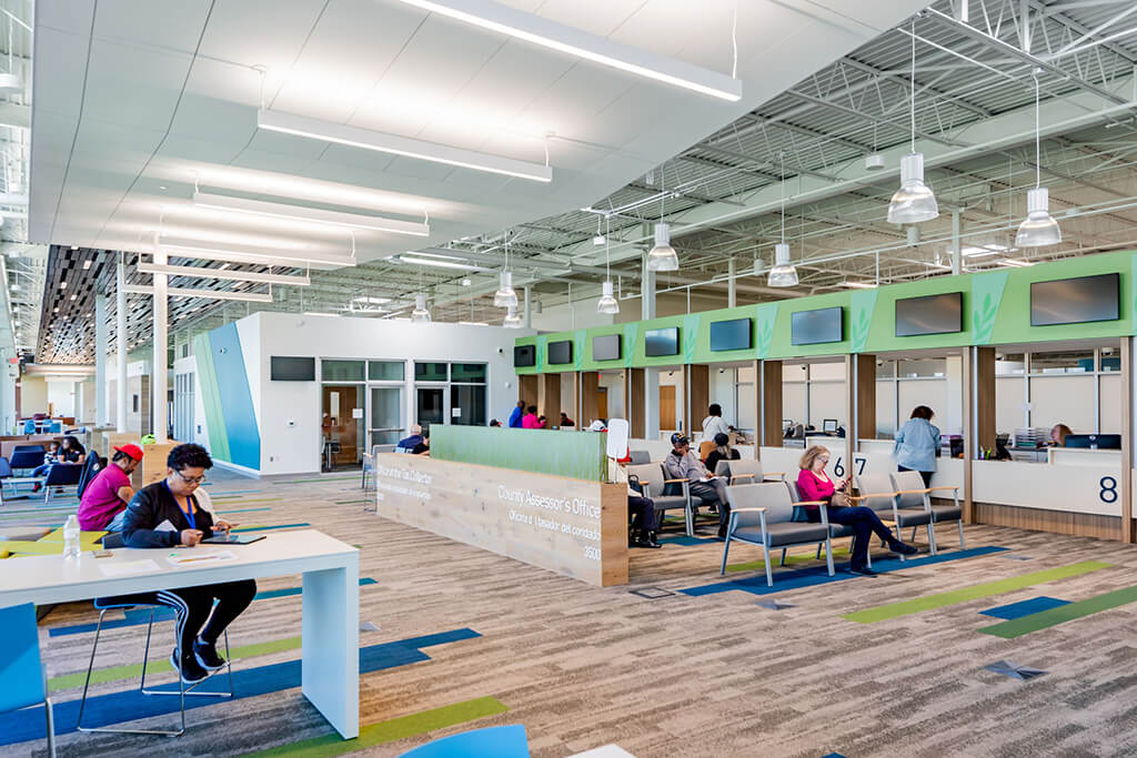 Comprehensive renovation to provide new office space for Mecklenburg County agencies. The single-story center is located in a portion of a building already occupied by the County, requiring complex phasing and logistics to minimize construction impacts