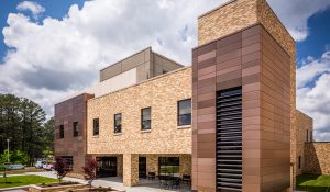 A new covered entry with a vehicular drop-off area and corresponding sitework and utility relocation was also included