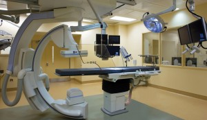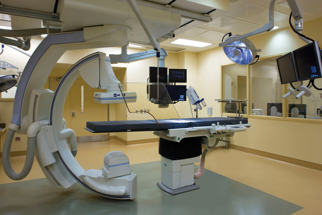 Twenty-six operating rooms, 76 prep/recovery rooms, and 24 post-anesthesia rooms. The high-tech operating rooms, more than 600 square feet each, maximize room space with flat screen computer monitors and state-of-the-art equipment mounted on moveable arms suspended from the ceiling