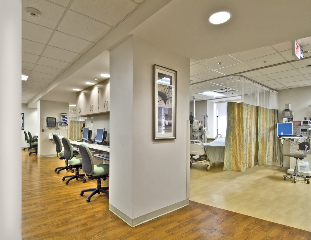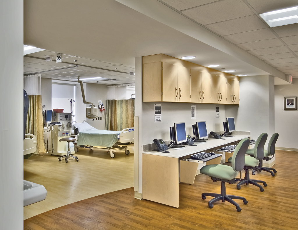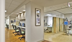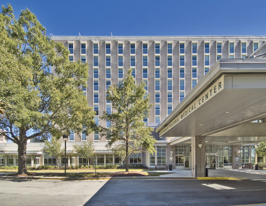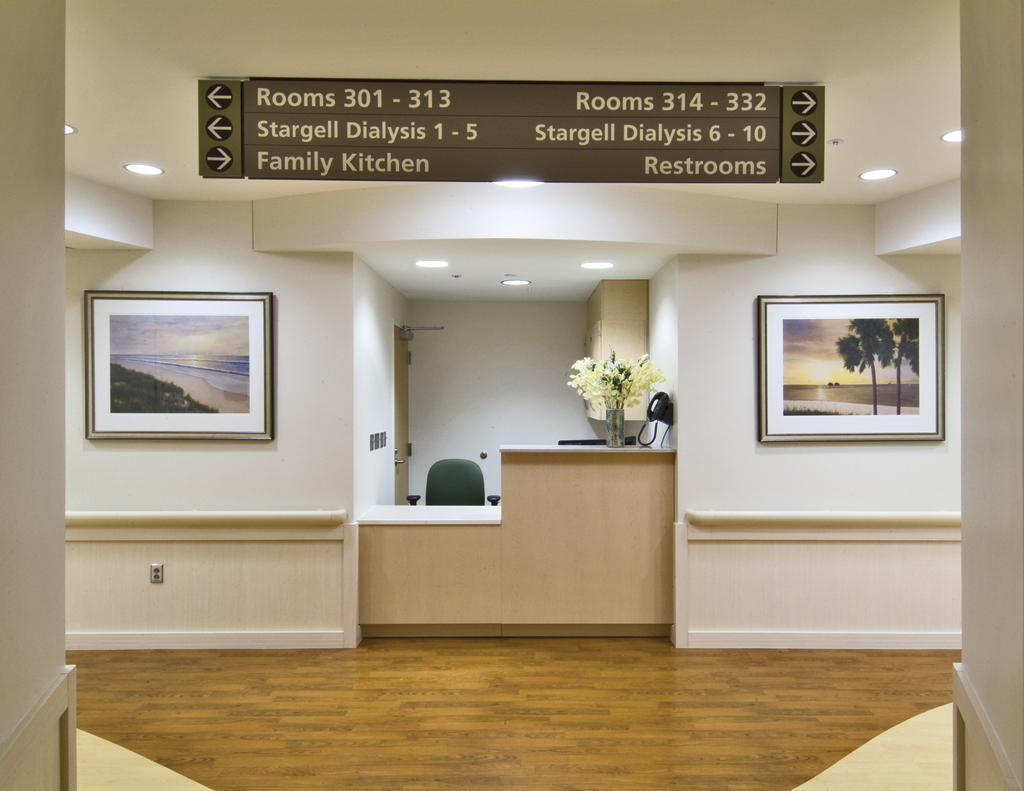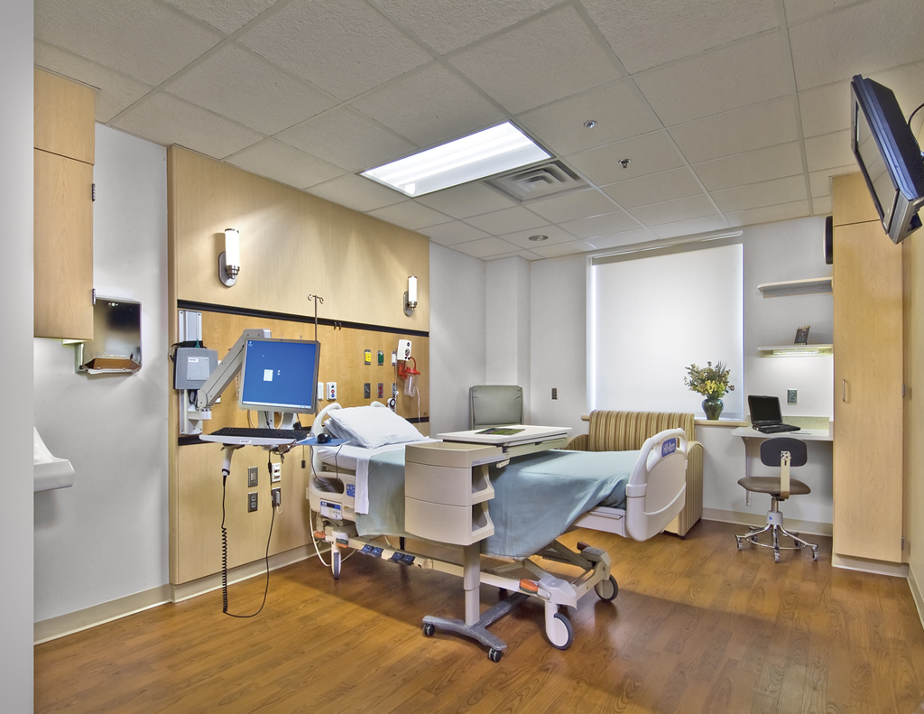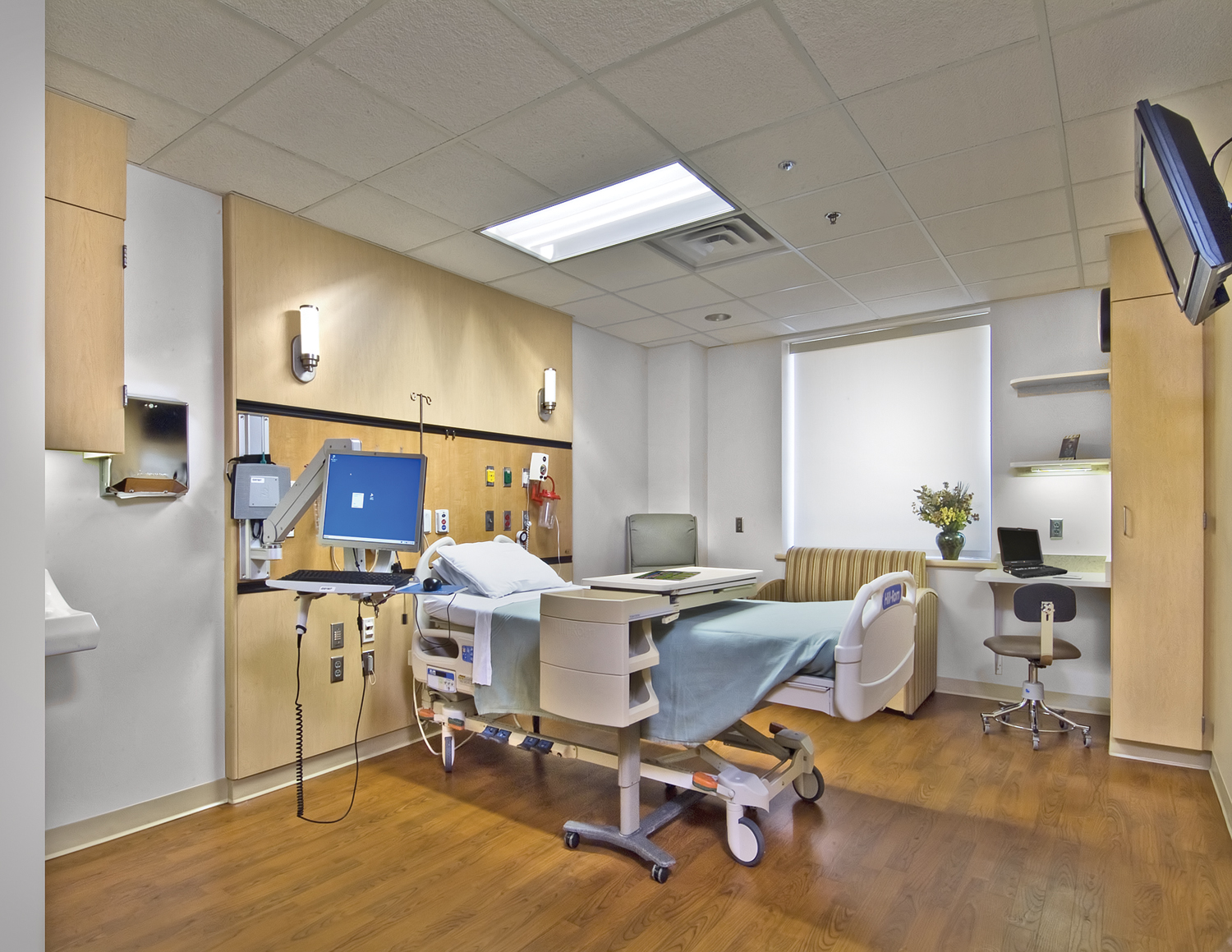 After Rodgers completed construction of the adjacent Women’s and Children’s Hospital and Surgery Pavilion in 2008, NHRMC reorganized so Rodgers could convert the entire nine-story into a patient tower with single-occupancy patient rooms, one floor at a time. The renovated tower now houses 384 patient beds, 10 dialysis beds, and 54 nurses stations