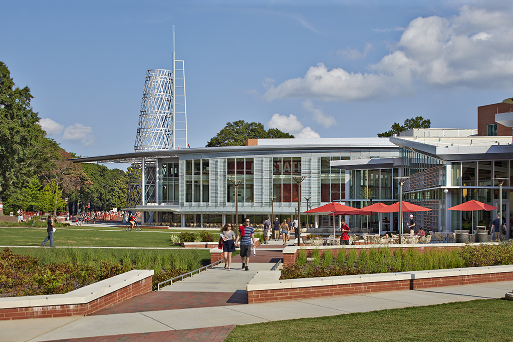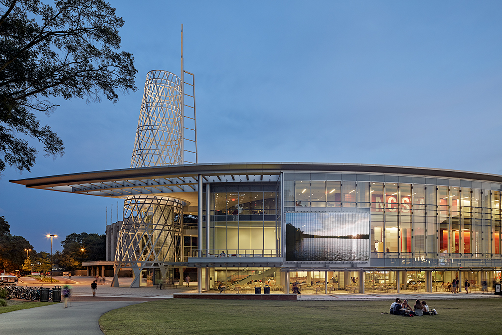 Houses the Gregg Museum of Art & Design, plus the 800-seat Stewart Theatre, plus a smaller theatre and studio