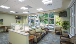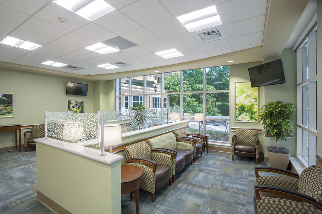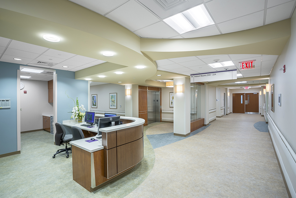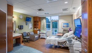 Existing patient rooms were renovated to match the new design, featuring private balconies, sleeper chairs and full bathrooms