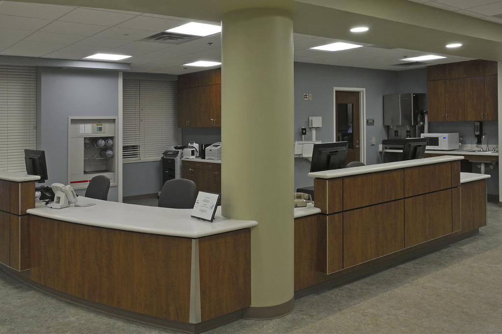 Added support areas include nursing stations, storage rooms and physician dictation spaces