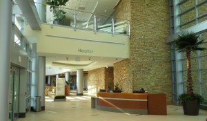 Ancillary services building includes medical offices, an auditorium, rehabilitation area, exam rooms, X-ray rooms and waiting areas