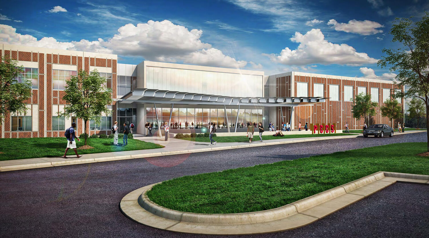 The new high school campus will sit on approximately 11 acres in Gastonia. The first phase of development is approximately 71,000 square feet of new building construction. Spaces will include classrooms, science labs, music and visual art classrooms, a gymnasium, theatre space, teacher support spaces, a multi-purpose community room and administration and guidance offices. Site development includes approximately 350 parking spaces and a soccer field.