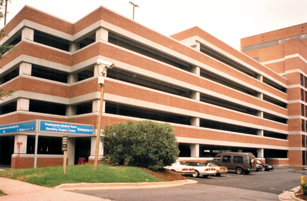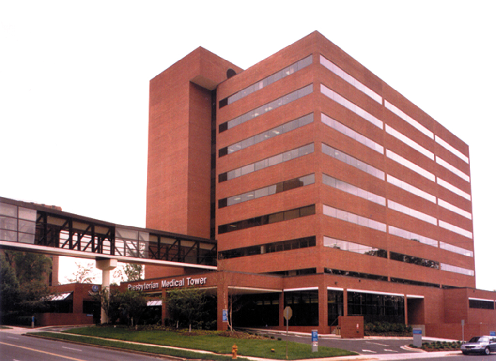 Nine-story tower housing new medical offices and same-day surgery center, along with a 829-space precast parking deck and overhead connecting bridge to the main hospital