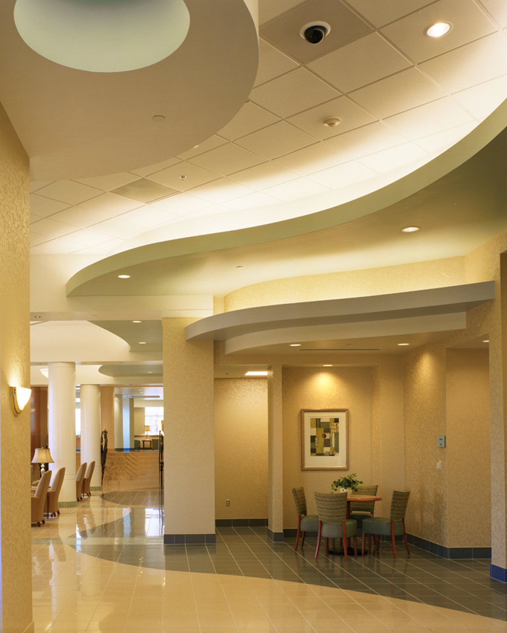 The new Women’s Center includes 39 postpartum beds, a newborn nursery, 16 labor and delivery rooms, 3 C-Section rooms, 14 high-risk antepartum beds and various support areas. A ground-level lobby provides vertical access to the Women’s Center