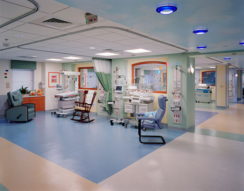 Seventh-floor renovations in the existing hospital created a 38-position ICU unit and 20 new GYN beds