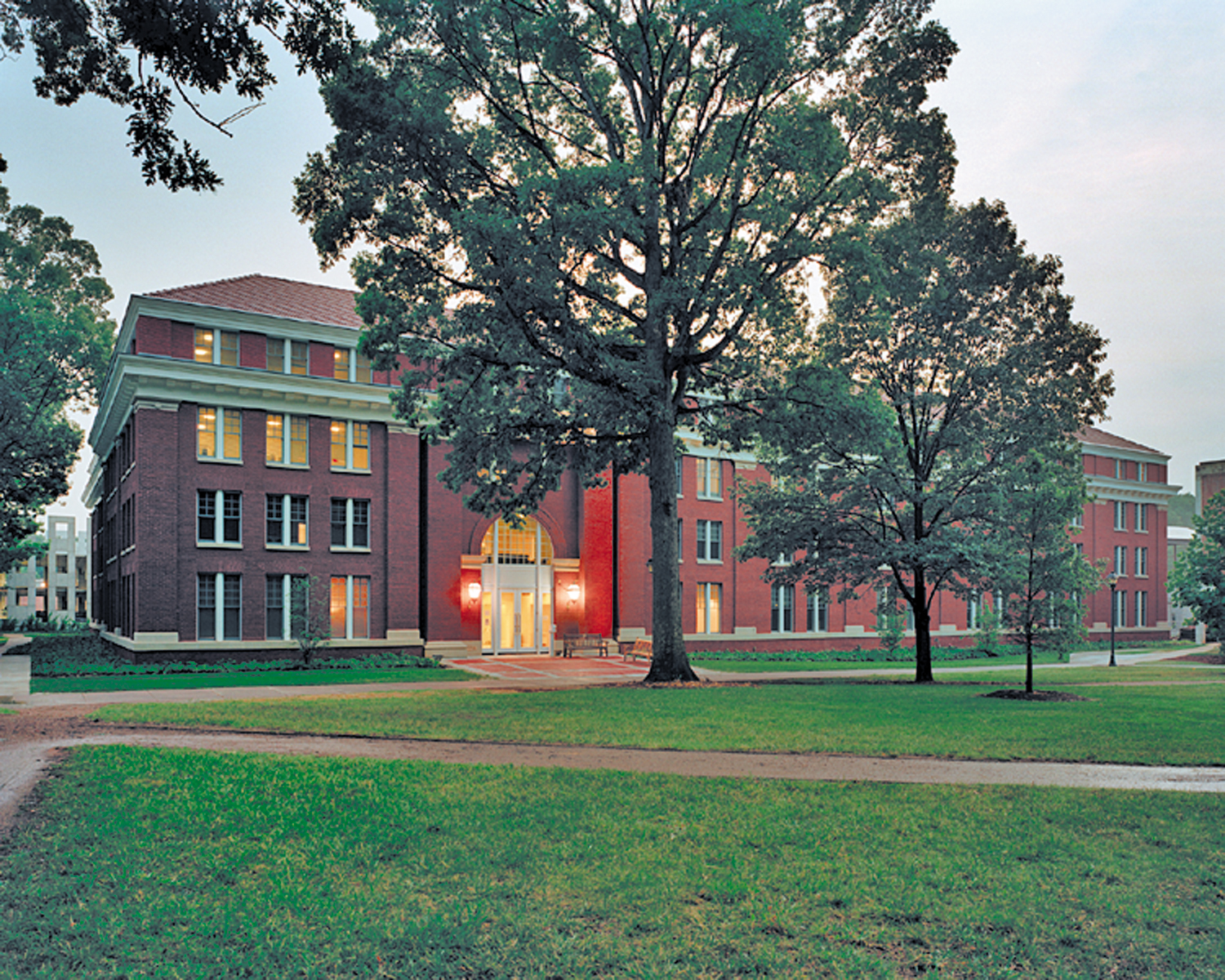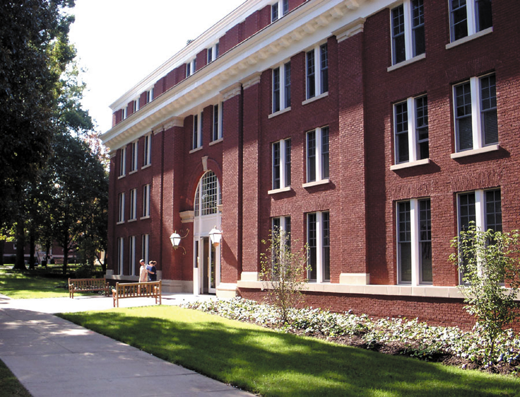 Five-story dormitory featuring cast-in-place, post-tension concrete with brick veneer, cast-stone water table and GFRC cornices and entablatures