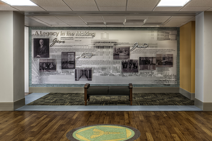 Rodgers has completed a major demolition and extensive renovation project at Self Regional Medical Center. In order to keep the hospital up-to-date on codes and improve the design and amenities, four floors of the central portion of the hospital affectionately referred to as “Old Main” (dating to the 1950s) were demolished along with mechanical penthouses. A new spacious and light-filled corridor leads from the front entrance to the opposite end of the hospital.