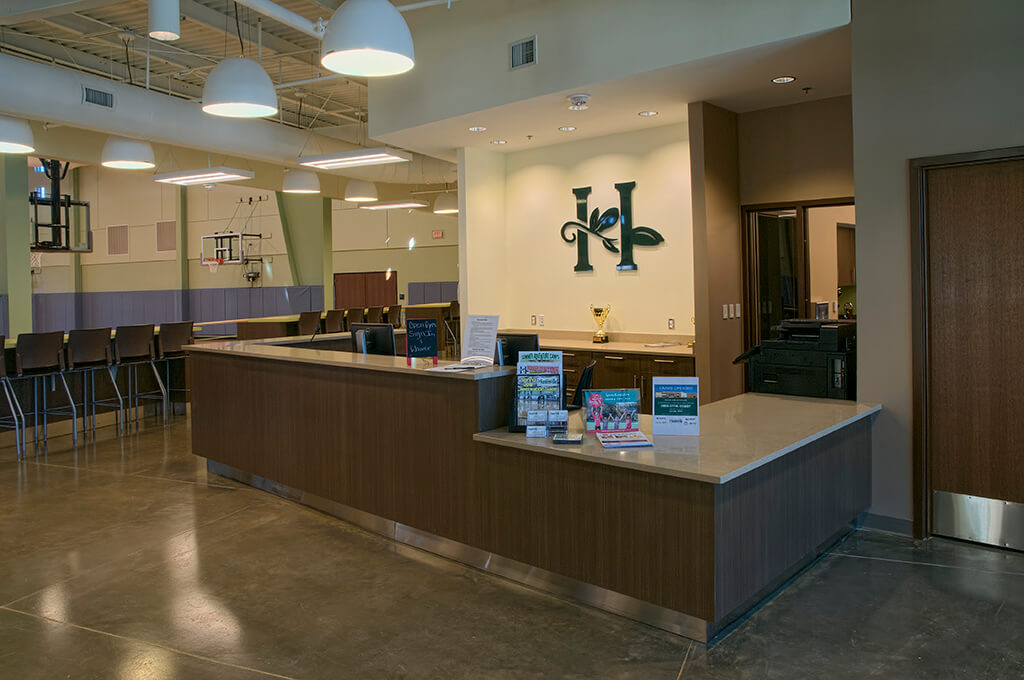The Town of Huntersville’s Recreation Center is an indoor center with basketball and volleyball courts, offices, conference rooms and a reception area. The building is located on a 10-acre site with parking