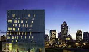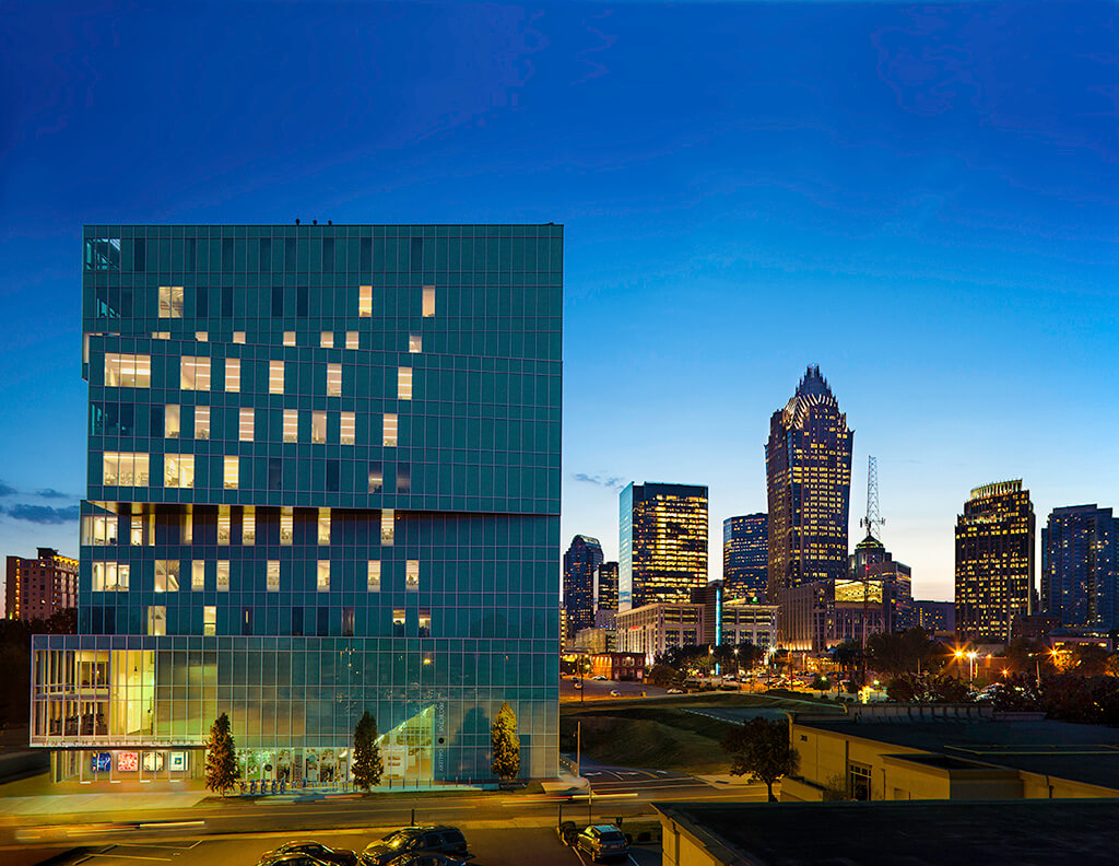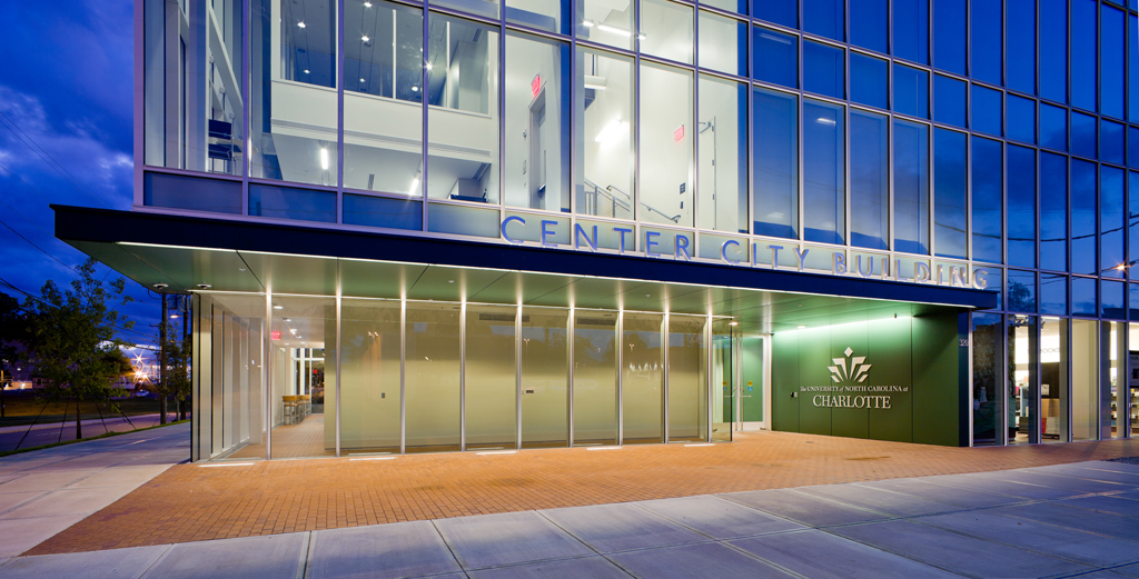 Reflects a sharp contrast to the traditional brick structures on the University’s main campus 10 miles north of the city