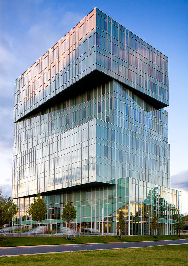 Construction of a distinctive, contemporary 13-level glass building with fritted and spandrel panels