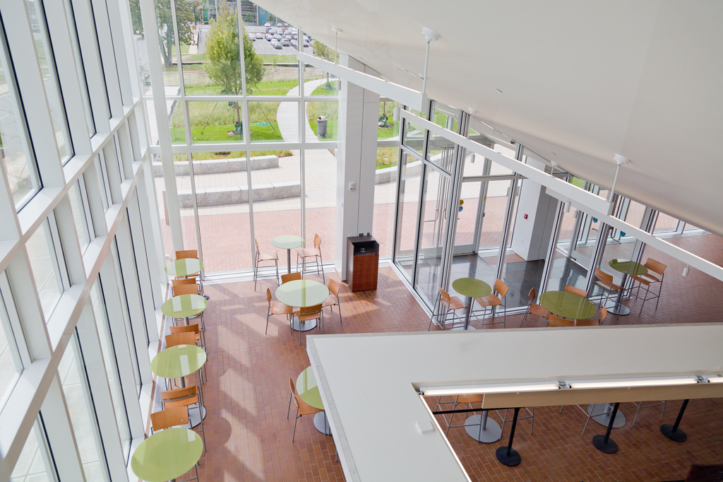 Lighting occupancy sensors throughout building. Some 90-percent of rooms have daylight views. Gray water from inside the building is filtered, treated, and pumped back into the building to flush toilets and urinals