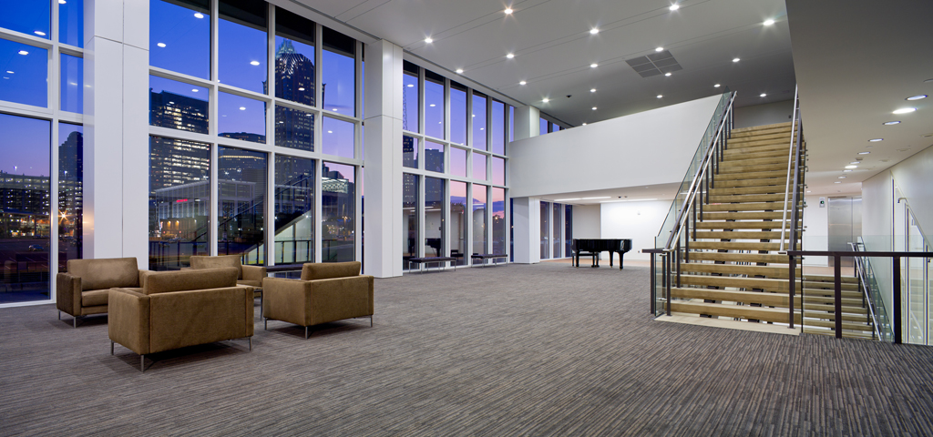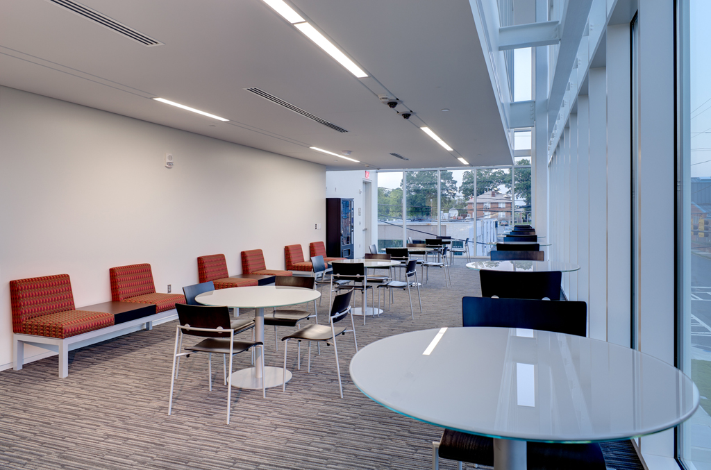 Includes a basement and penthouse, as well as 24 classrooms, 34 offices with open space for 77 partitioned workstations, an auditorium, lecture hall, commercial kitchen, art gallery, bookstore and café
