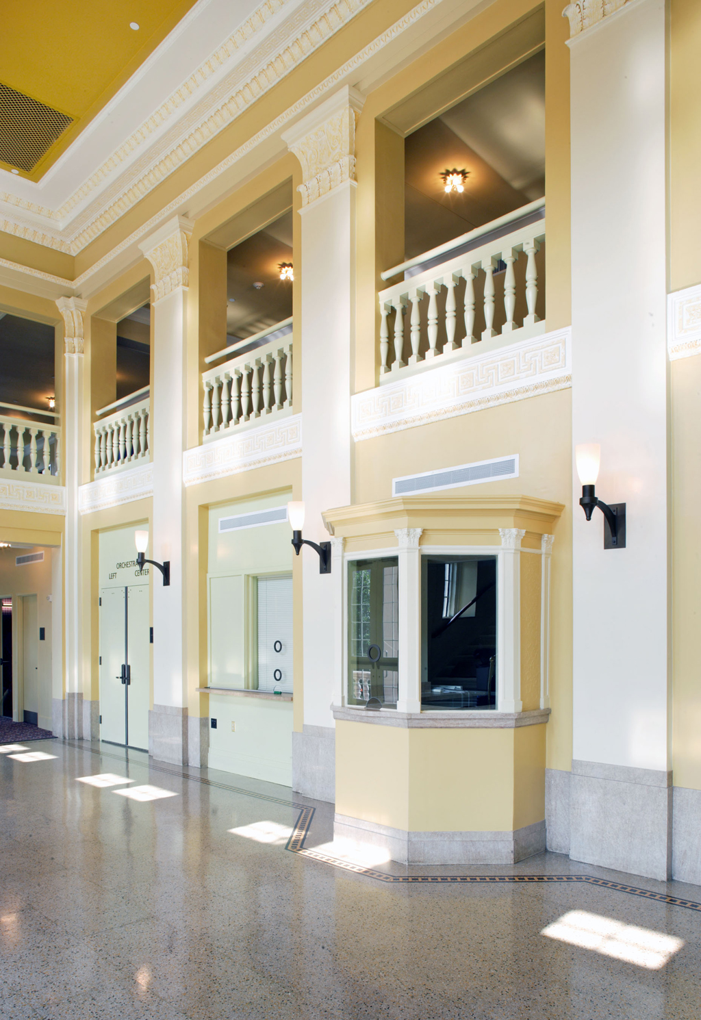 Renovation included back-of-house areas, new HVAC, electrical and plumbing systems, upgraded ADA compliance measures, new elevators and loading dock, improvements to all A/V systems, and minor exterior restorations