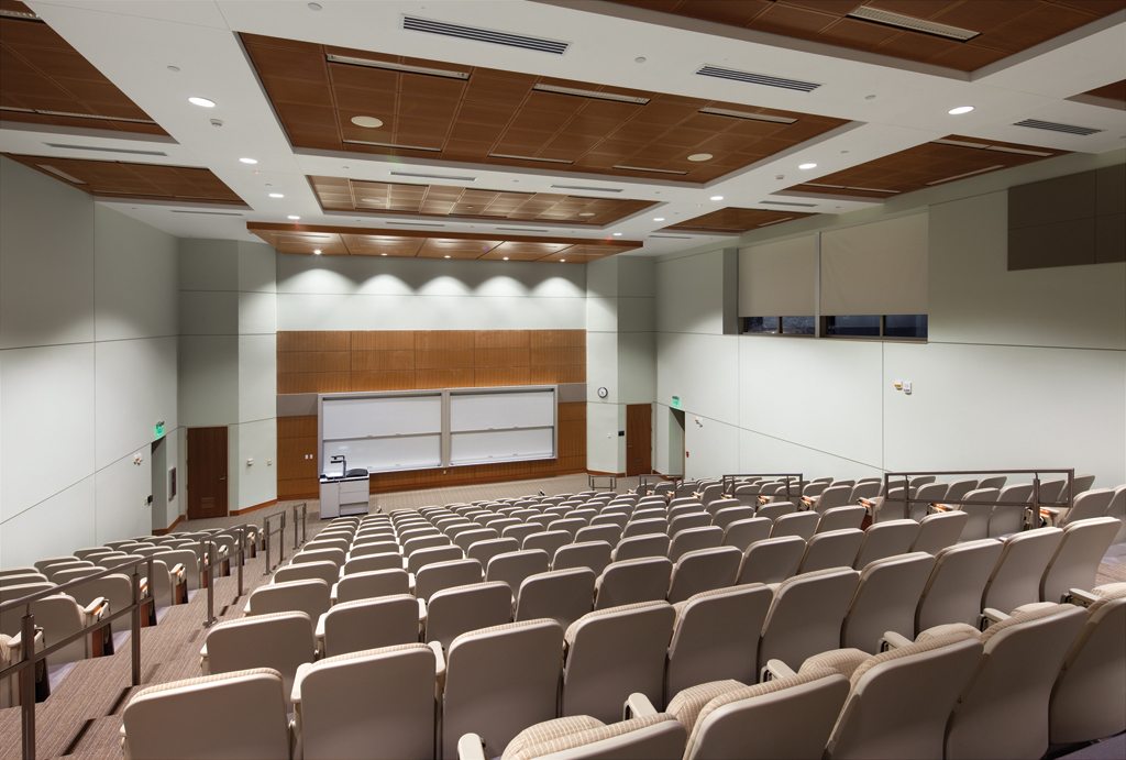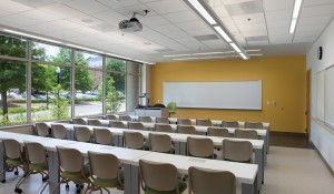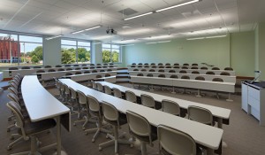 19 classrooms, one auditorium with 300 seats and another with 100 seats, as well as many offices for faculty and staff